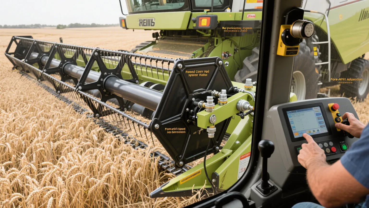 Ensuite, il y a la bobine. Terminez sa position et vous manquez de cultures ou de les écraser. Ce cylindre hydraulique de la récolte de précision vous permet de pousser la bobine vers le haut, de la faire glisser vers l'avant ou de ralentir sa rotation - quel que soit la récolte. Soudain, les plantes se nourrissent de la machine comme elles sont censées le faire, pas de lacunes, pas de gaspillage, juste un flux constant qui maintient la récolte.