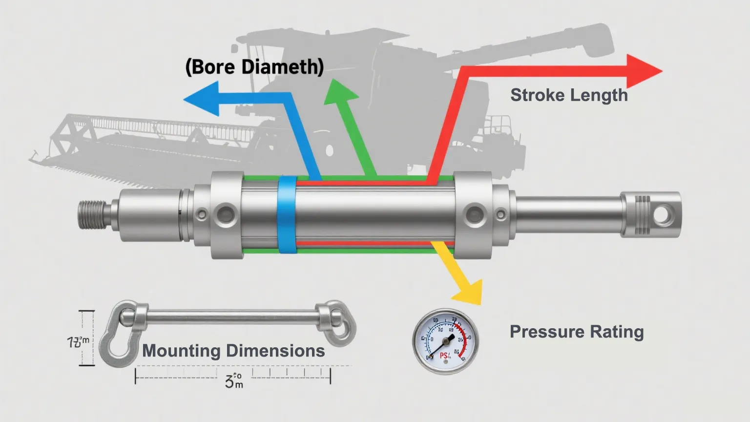 Tout d'abord, alésage du diamètre. C'est ce qui détermine la quantité de muscle de votre cylindre hydraulique de la moissonneuse. Trop petit, et il aura du mal à soulever cette en-tête lourde lorsque vous êtes dans des cultures épaisses. Trop grand, et vous gaspillez le pouvoir qui pourrait aller ailleurs. Vérifiez les spécifications de votre ancien cylindre ou le manuel de votre récolte - ce numéro doit correspondre, simple et simple, si vous voulez le type de force qui gère les journées difficiles sur le terrain.