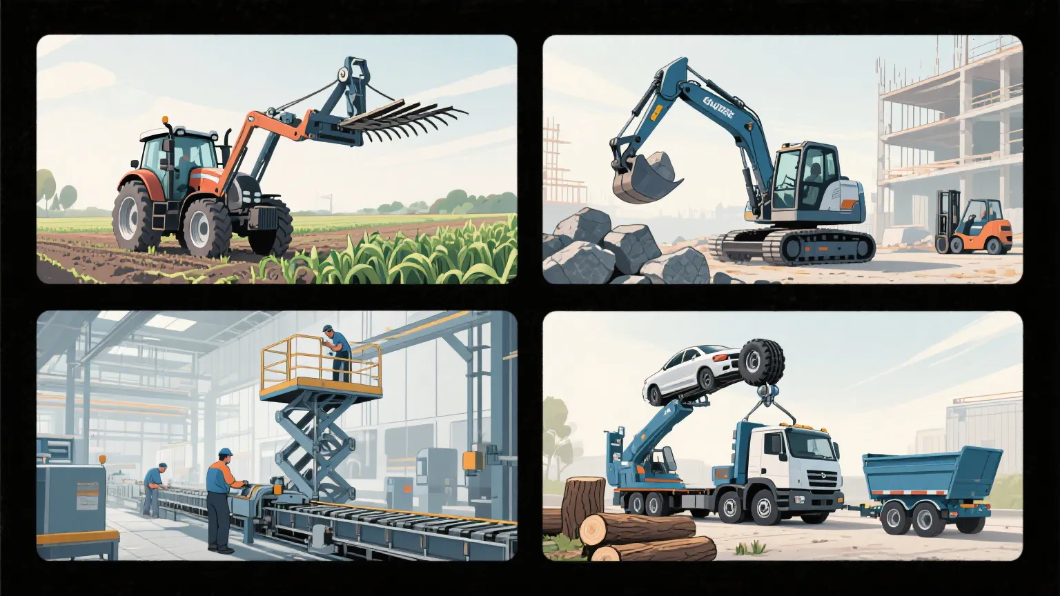 Dans la construction et la manipulation des matériaux, c'est tout aussi pratique. Les bouvillons de dérapage dépendent de ce cylindre de levage hydraulique lourd pour faire fonctionner des seaux, des grappins et des tarières - des travaux qui nécessitent une puissance cohérente. Les petits chariots élévateurs l'utilisent également pour soulever et incliner le mât, donc les palettes vont exactement là où elles en ont besoin. Plates-formes de travail aérien? Les mécanismes de ciseaux dans des ascenseurs plus petits reposent sur sa précision pour augmenter et abaisser en toute sécurité. Même les ceintures de convoyeurs restent serrées et efficaces, grâce à ce cylindre de lifting hydraulique mangeant des tâches de tension sans accroc.