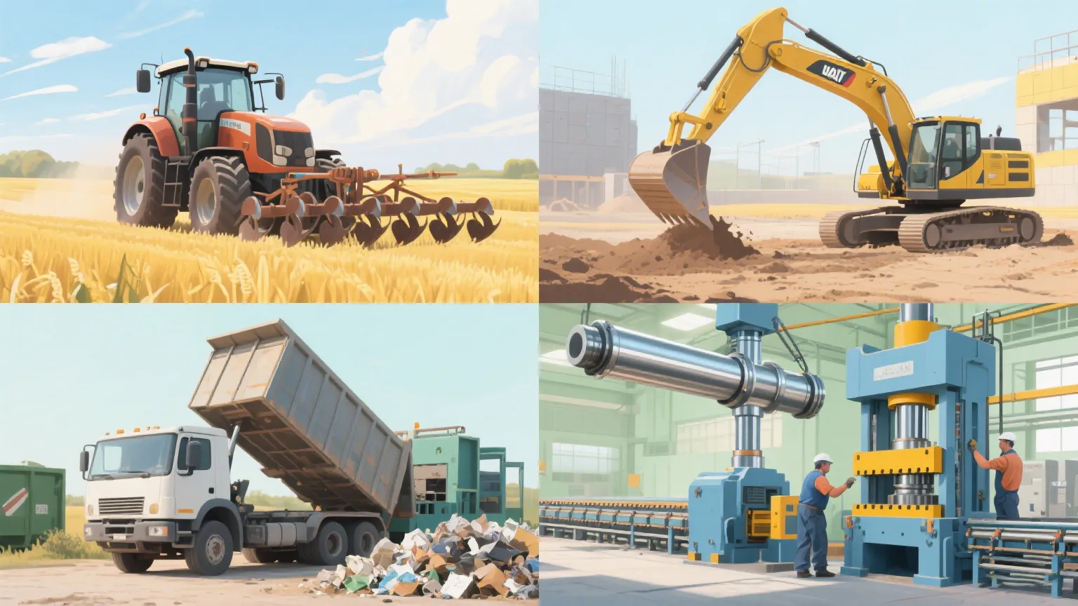 La gestion des déchets et la logistique ont besoin d'un cylindre de levage hydraulique qui ne les laissera pas tomber, et celui-ci s'adapte parfaitement. Des camions à benne basculante, des compacteurs à ordures, des balers industriels - ils comptent tous sur celui-ci pour faire le lourdeur. En tant que cylindre de levage hydraulique de camion à benne basculante, il hisse les lits chargés en douceur, pas de secousses ni de stalles. Dans les camions à ordures ou les balers, c'est la force qui écrase les déchets ou les matériaux serrés. Lorsque vous avez affaire à des charges désordonnées et lourdes jour après jour, un cylindre de portance hydraulique durable comme ce n'est pas facultatif - c'est un must.