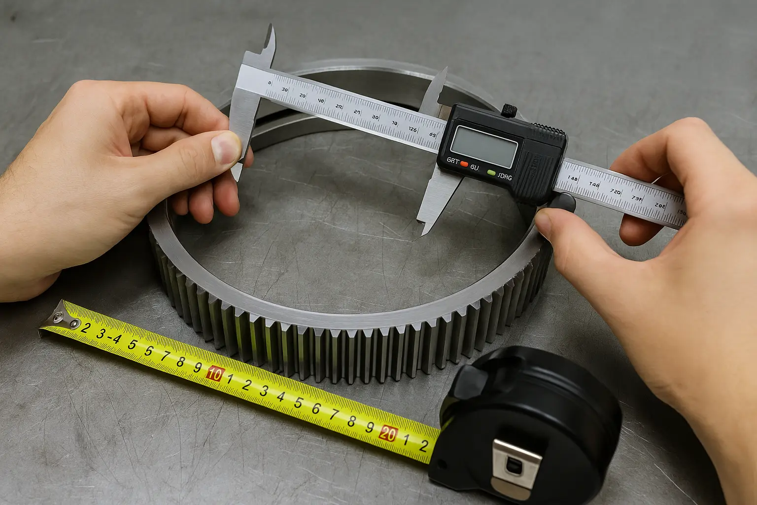 Utilisez un étrier pour mesurer la distance entre le bord le plus extérieur de l'anneau d'engrenage et le bord le plus extérieur, qui est le soi-disant "diamètre extérieur". Cette valeur détermine l'espace occupé par l'anneau d'engrenage dans la structure globale. Il ne peut pas être trop grand ou trop petit, et il doit s'adapter à la position de votre équipement d'origine.